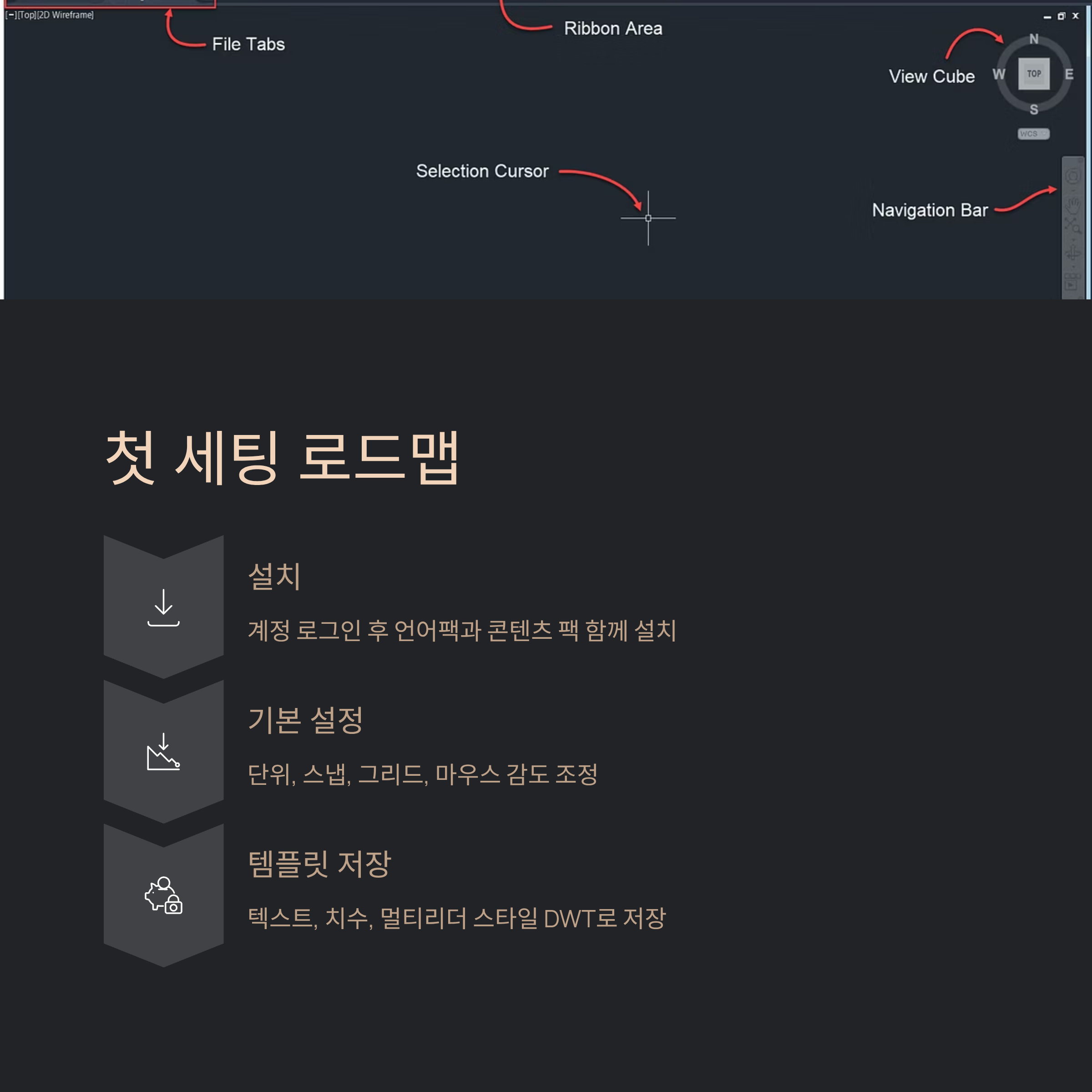 가장 먼저 계정으로 로그인해 제품을 내려받고, 언어팩과 콘텐츠 팩을 함께 설치해요. 작업 폴더는 드라이브 최상위에 짧은 경로로 잡아 두면 외부참조가 덜 꼬여요. 처음 실행하면 단위(건축·기계·토목)와 스냅, 그리드, 마우스 휠 감도를 바로 맞춰요. 회사 표준이 있다면 텍스트 스타일, 치수 스타일, 멀티리더를 묶어 템플릿(DWT)으로 저장해 두세요. 이렇게 시작하면 이후 프로젝트마다 같은 환경이 떠서 실수가 줄어요. 그리고 여기 첫 단락에서 단 한 번만 정확히 넣어 둘게요: 오토캐드코리아 공식 가이드를 참고하면 설치 항목 이름을 헷갈리지 않아서 초반 시간이 크게 줄어요.